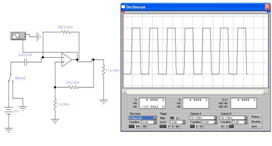 Максимальный выходной ток операционного усилителя в схеме мультивибратора не должен превышать максимально допустимого для данного типа ОУ значения IВЫХ
