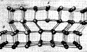 эти ряды атомов смещаются относительно друг друга, попадая в равновесные позиции в таких точках, как А