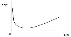 Предел текучести материала сильно зависит от плотности дислокаций в нем. На рис. 16 приведена такая зависимость. Видно, что предел текучести оказывается больше при очень малых значениях плотности дислокаций и, наоборот, при больших плотностях дислокаций. Увеличение при больших связывают с взаимодействием дислокаций друг с другом и с другими дефектами кристаллической решетки.