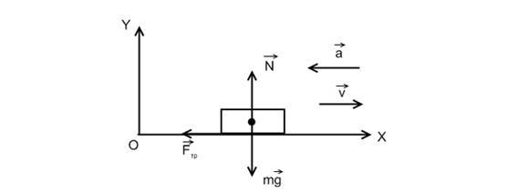 б) При торможении сила трения направлена в сторону, противоположную движению и является силой трения скольжения. Уравнение движения автомобиля в этом случае в проекциях на оси координат
