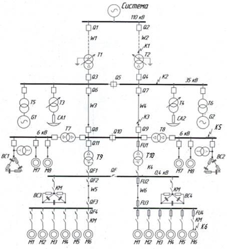 1. Рассчитать токи короткого замыкания (ТКЗ) в объеме, необходимом для выбора установок и проверки чувствительности.