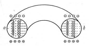 Как видно из рис.7, на котором изображен разрез тороидальной ловушки, и градиентный, и центробежный дрейфы вызывают движение зарядов одного знака в одну и ту же сторону (положительные заряды дрейфуют вниз, а отрицательные - вверх). Возникает разделение зарядов: вверху образуется избыток отрицательных зарядов, а внизу - положительных. Это приводит к появлению электрического поля, которое перпендикулярно магнитному полю. А возникшее электрическое поле вызывает электрический дрейф частиц, и плазма как целое устремляется к наружной стенке - и гибнет. Итак, надежды удержать плазму в простой тороидальной ловушке не оправдываются.