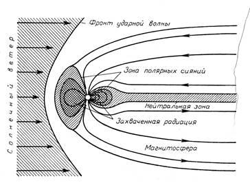 Солнечная корона - внешняя атмосфера Солнца. Некоторые астрономы называют ее атмосферой Солнца. Она образована наиболее разреженным ионизированным газом. Простирается примерно на расстояние 5 диаметров Солнца, имеет лучистое строение, слабо светится. Ее можно наблюдать только во время полного солнечного затмения . Яркость короны примерно такая же, как у Луны в полнолуние, что составляет лишь около 5/1000000 долей яркости Солнца. Корональные газы в высокой степени ионизированы, что определяет их температуру примерно в 1 млн. градусов. Внешние слои короны излучают в космическое пространство корональный газ - солнечный ветер. Это второй энергетический (после лучистого электромагнитного) поток Солнца, получаемый планетами. Скорость удаления коронального газа от Солнца возрастает от нескольких километров в секунду у короны до 450 км/сек на уровне орбиты Земли, что связано с уменьшением силы притяжения Солнца при увеличении расстояния. Постепенно разреживаясь по мере удаления от Солнца, корональный газ заполняет все межпланетное пространство. Он воздействует на тела Солнечной системы как непосредственно, так и через магнитное поле, которое несет с собой. Оно взаимодействует с магнитными полями планет. Именно корональный газ (солнечный ветер) является основной причиной полярных сияний на Земле и активности других процессов магнитосферы.