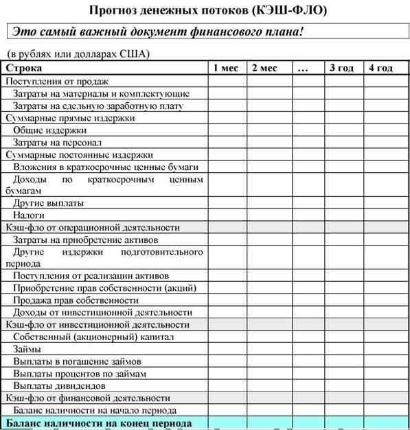 План денежных потоков отражает поступление всех денег от всех источников, включая продажу акций или получаемых в долг, а также средств от продажи или ликвидации некоторых активов.