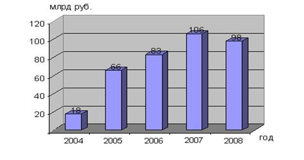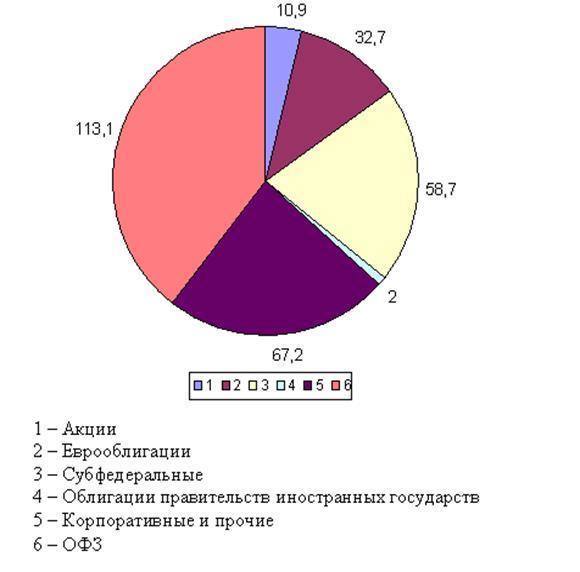 Рисунок И1 – Структура портфеля ценных бумаг, имеющихся в наличии для продажи за 2008 г., млрд руб. [7]