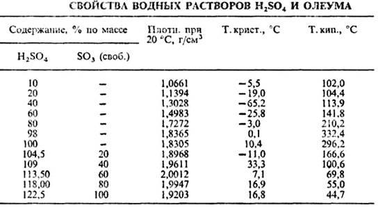 Температура кипения серной кислоты зависит от ее концентрации. С повышением концентрации водной серной кислоты температура кипения ее возрастает и достигает максимума 336,5°С при концентрации 98,3%, что соответствует азеотропному составу, после чего снижается (таблица 1.1) [1].