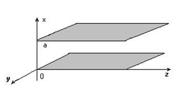 Стационарное движение жидкости между двумя бесконечными неподвижными пластинами