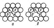 При утворенні вакансії один з центральних атомів переміщається у відповідне місце на поверхні, у випадку дивакансії А—В