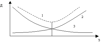 С увеличением уровня обслуживания растут расходы по нему (кривая 2), но уменьшаются потери доходов от снижения уровня обслуживания (кривая 3). Пунктирная кривая (1) получается суммированием координат двух названных составляющих. В связи со значительными трудностями поиска и практической реализации оптимального уровня обслуживания (минимум ординаты пунктирной кривой 1) предприятия, предоставляющие услуги, и их клиентура ориентируются на "достаточно хорошее решение" - рациональное, приемлемое соотношение расходов и доходов.