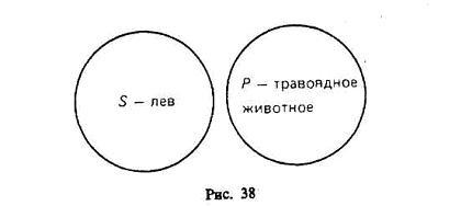 — «травоядное животное», квантор общности — «ни один». Здесь объем субъекта полностью исключается из объема предиката, и наоборот. Позтому и S,