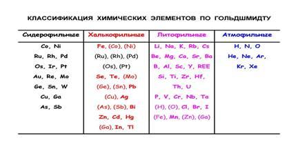Геохимическая классификация химических элементов по Гольдшмидту