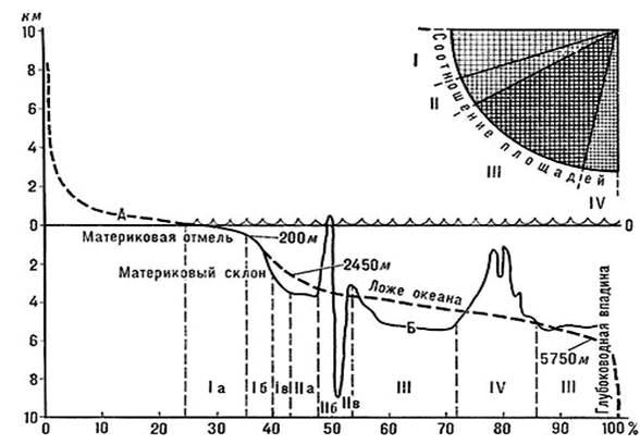 Второй - пятый типы наиболее характерны для шельфовых зон. (Исключая такие моря как Средиземное и Черное). Шельфы, или материковые отмели, являющются подводным продолжением материков, прослеживаются на глубинах до 600м, а в отдельных случаях до 1000м (рис.1). Средний уклон поверхности шельфа равен 7’, т.е. 2м на 1км. С внутренней стороны они ограничены береговой линией, а с внешней - континентальным склоном.