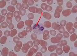 : сегментированное ядро; в цитоплазме имеются мелкие гранулы, окрашивающиеся в слабо оксифильный (розовый) цвет, среди которых различают неспецифические азурофильные гранулы - разновидность лизосом, специфические гранулы, другие органеллы развиты слабо. Размеры в мазке 10-12 мкм.