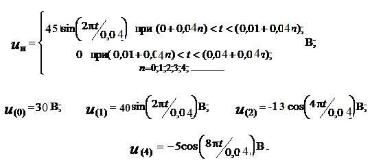 = 0,04 c) графики напряжения на выходе выпрямителя без сглаживающего фильтра, первых четырех членов ряда Фурье разложения функции напряжения (как принято в таких случаях, ось абсцисс разметить в градусах (x