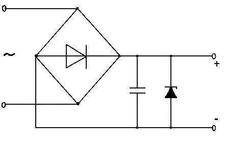 Как правило, для сглаживания пульсирующего напряжения на выходе выпрямителя применяется фильтр в виде конденсатора или дросселя, к тому же для стабилизации выходного напряжения устанавливается стабилитрон рис. 5.