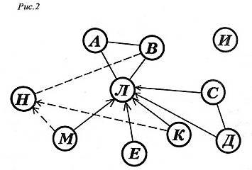Анализ социограммы начинается с отыскания центральных, наиболее влиятельных членов, затем взаимных пар и группировок. Группировки составляются из взаимосвязанных лиц, стремящихся выбирать друг друга. Наиболее часто в социометрических измерениях встречаются положительные группировки из 2, 3 членов, реже из 4 и более членов (рис. 2).