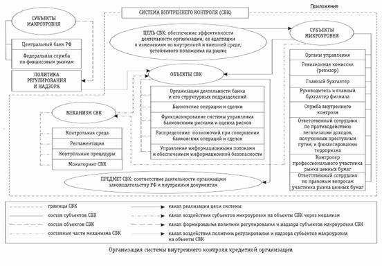 Механизм системы внутреннего контроля в кредитной организации — «образующий» элемент системы, то есть то, посредством чего обеспечивается непосредственное проведение внутреннего контроля.[6]