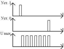 Динамический триггер представляет собой систему, одно из состояний которой (единичное) характеризуется наличием на выходе непрерывной последовательности импульсов определённой частоты, а другое — отсутствием выходных импульсов (нулевое). Смена состояний производится внешними импульсами (рис. 1). Динамические триггеры в настоящее время используются редко.