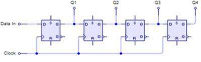 4-х разрядный сдвиговый регистр, преобразователь последовательного кода в параллельный и обратно