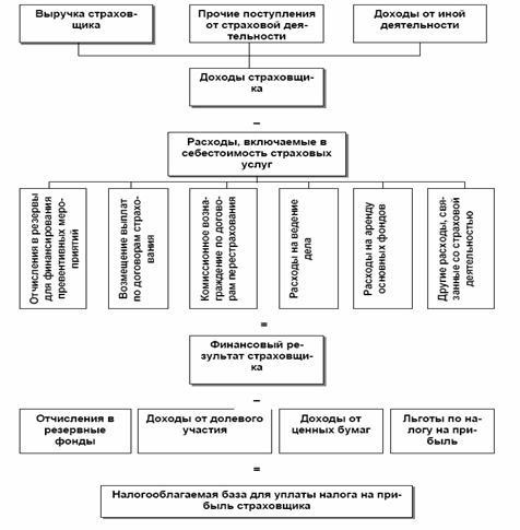 Финансовый результат как налогооблагаемая база исчисляется как разность между выручкой от реализации страховых услуг и поступлениями от иной деятельности, осуществляемой страховщиками в соответствии с действующим законодательством, и расходами, включаемыми в себестоимость оказываемых ими страховых услуг и иных работ (услуг), с учетом сумм доходов и расходов, относимых непосредственно на финансовые результаты их деятельности.