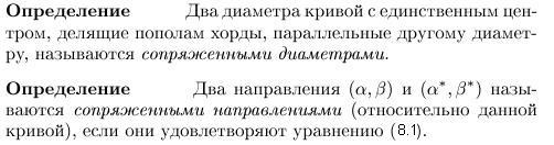 Если один из двух диаметров эллипса или гиперболы делит пополам хорды, параллельные другому, то второй диаметр делит пополам хорды, параллельные первому. Такие два диаметра называются взаимно сопряжёнными.
