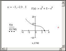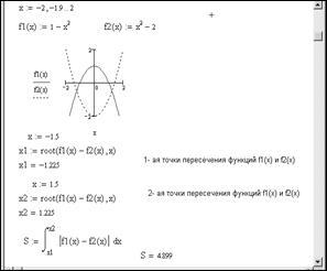 2. Находим точки пересечения функций с помощью функции root. Начальные приближения определим по графику.