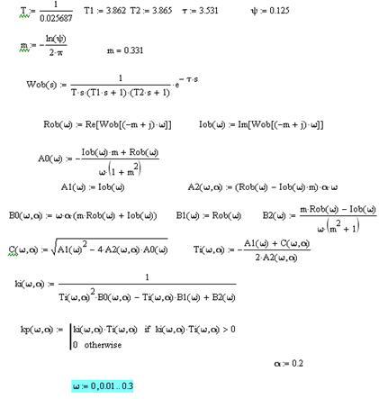 Передаточная функция регулятора будет записываться в виде следующего выражения для ПИ-регулятора: