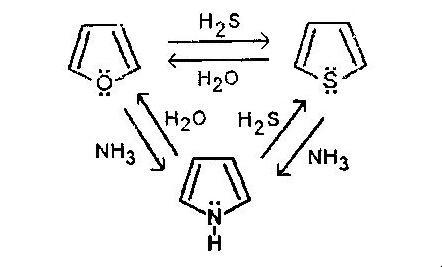 1. Фуран, тиофен и пиррол могут превращаться в друг друга при нагревании до 400-450 в присутствии катализатора Al2