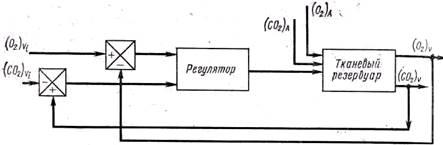 Так как реакции сердца и сосудов диктуются в первую очередь интересами химизма дыхания, то есть все основания определить систему управления кровообращением как сердечно-сосудистый хемостат. Управляемыми переменными здесь, очевидно, являются величины напряжения кислорода