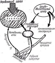 Сосудорасширяющий эффект действия продуктов тканевого метаболизма в организме сосуществует с обратным вазоконстрикторным (сосудосужающим) действием тканевых рецепторов.
