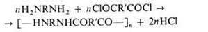 Поликонденсация диаминов и дихлорангидридов ди-карбоновых кислот на границе раздела несмешивающихся фаз, обычно вода - органический растворитель