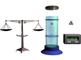 Телом, движение которого наблюдают, служит шарик (D<5мм), а средой - вязкие жидкости. Жидкость наполняет цилиндрический сосуд с двумя поперечными метками на разных уровнях. Измеряя время падения шарика на пути от одной метки до другой, находят его среднюю скорость. Найденное значение можно отождествить с установившейся , если расстояние от верхней метки до уровня жидкости превышает путь релаксации (смотри рисунок). Масса шарика определяется взвешиванием на аналитических весах.