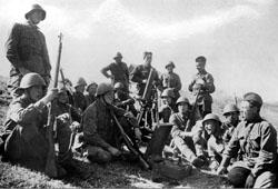 Сразу после напряженной репетиции группа ансамбля выехала на Белорусский вокзал для выступления перед бойцами, уезжающими на передовую (мы не оговорились, сказав «группа ансамбля». Дело в том, что полного состава коллектива в те дни уже не было. Три группы сразу же выехали на фронт, а четвертая, руководимая А. В. Александровым, оставалась временно в Москве, для обслуживания воинских частей, госпиталей, выступлений на радио и разучивания новых песен). Вид вокзала был необычен: все помещения до отказа заполнены военными, как говорится, яблоку негде упасть. На всех новое, еще не пригнанное обмундирование. Многие уже успели получить винтовки, пулеметы, саперные лопатки, противогазы, словом, все, что полагается фронтовику.
