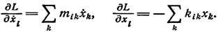 получим окончательно следующее выражение для лагранжевой функции системы, совершающей одномерные малые колебания: