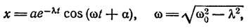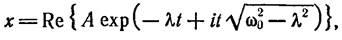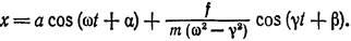 , получим частный интеграл уравнения (5.1), а прибавив к нему общее решение уравнения без правой части (которое мы напишем для определенности для случая ω0>λ), получим окончательно: