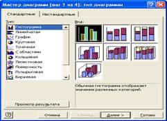 Рисунок 11 – Первое диалоговое окно Мастера диаграмм позволяет выбрать тип и подтип