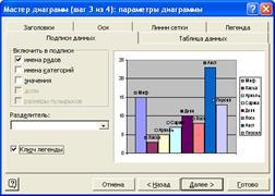 Рисунок 18 – Мастер диаграмм позволяет добавлять на диаграмму подписи данных только нескольких типов