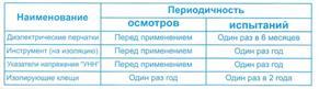 Указана периодичность осмотров и испытаний для основных средств защиты.