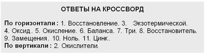 Разгадав кроссворд, вы узнаете, что вещества КМnО4, К2Сr2O7, О3 – cильные … (по вертикали (2)).