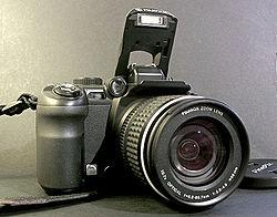— внешним видом напоминают зеркальную камеру, а также, как правило, помимо цифрового дисплея, оснащены видоискателем-глазком. Изображение в видоискателе такого аппарата формируется на отдельном цифровом экране, или на поворачивающемся основном экране. Как правило, имеют резьбу на объективе для присоединения насадок и светофильтров (пример — Konica Minolta серия моделей Z).