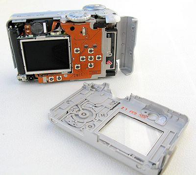 Частично разобранный цифровой фотоаппарат Canon PowerShot A75