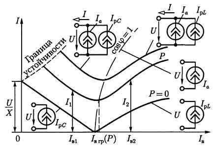 Ценной особенностью синхронного генератора, подключенного к электрической системе большой мощности, является возможность регулирования его реактивного тока посредством изменения тока возбуждения.
