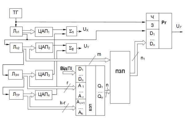 у відповідний текстовий рядок. З метою уніфікації застосований знакогенератор ПВІ з телевізійною розгорткою. При цьому система має підвищену швидкодію в порівнянні з ПВІ, що використовує повноформатний растр, оскільки з циклу звертання до БЗП виключений час вибірки з БЗП (уся матриця знака формується при фіксованій адресі в БЗП).