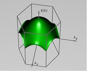 Спектр углеродной плоскости в первой зоне Бриллюэна. Показана только часть E(k)>0