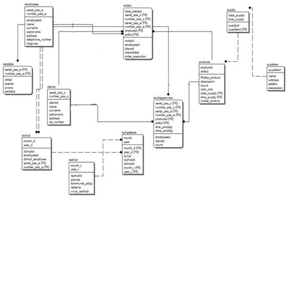 er-диаграмма: Схема базы данных, спроектированная с помощью программы ERWin.