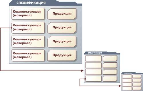 содержит перечень материалов и других составляющих, используемых при производстве изделия. Все описания материалов, полуфабрикатов, комплектующих и готовых изделий хранятся в информационной базе в общем номенклатурном списке, что упрощает процесс составления спецификаций и, в конечном итоге, облегчает планирование и управление.