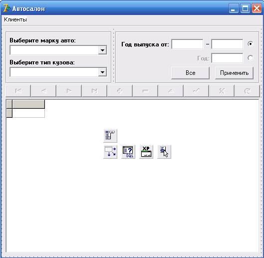 В данном случае оформление программы производилось добавлением основных элементов как DbGrid, ComboBox и т.д., а присвоение их значение производилось в самом коде.