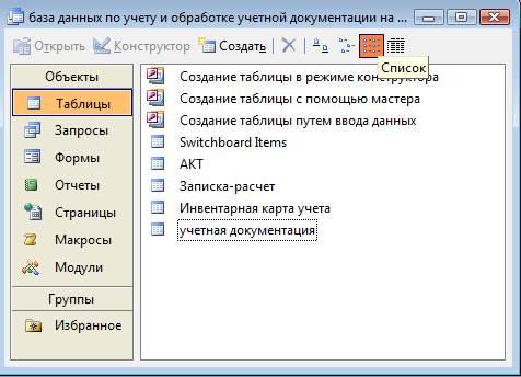 Перед созданием таблиц базы данных необходимо вначале разработать типы таблиц, соответствующие выбранной тематике контрольной работы. Для создания таблиц в режиме конструктора выполните операции: