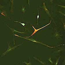 Рис.6. Иммунофлюоресцентная окраска на нейроспецифические маркеры клеток, дифференцирующихся в нейральном направлении, в культуре стромальных стволовых клеток костного мозга человека. Такие клетки использовали харьковские хирурги для лечения болезни Паркинсона.