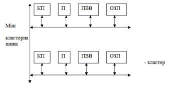 Ядро системи забезпечує інформаційне спряження усіх пристроїв. Воно може бути реалізоване у вигляді системної шини комутаційного поля або комутатора основної пам’яті. Управляючий процесор виконує супервізорні функції, обробляючий - обробку числових і символьних даних, матричний - матричну і векторну обробку.